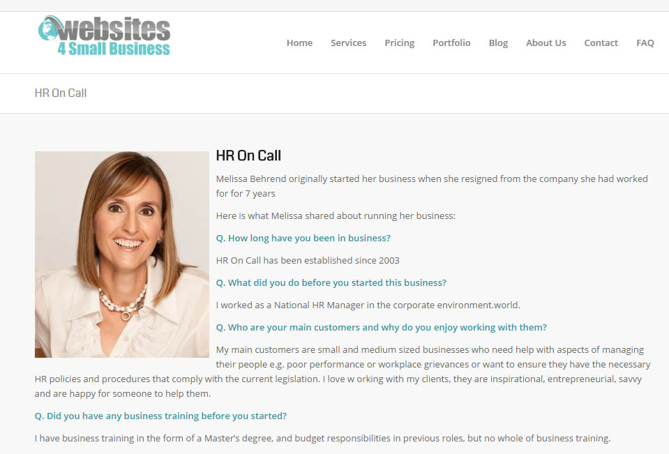 The Director of HR on Call, Melissa Behrend was interviewed by websites 4 Small Business  about her business and this interview can be found by following the link HR On Call.